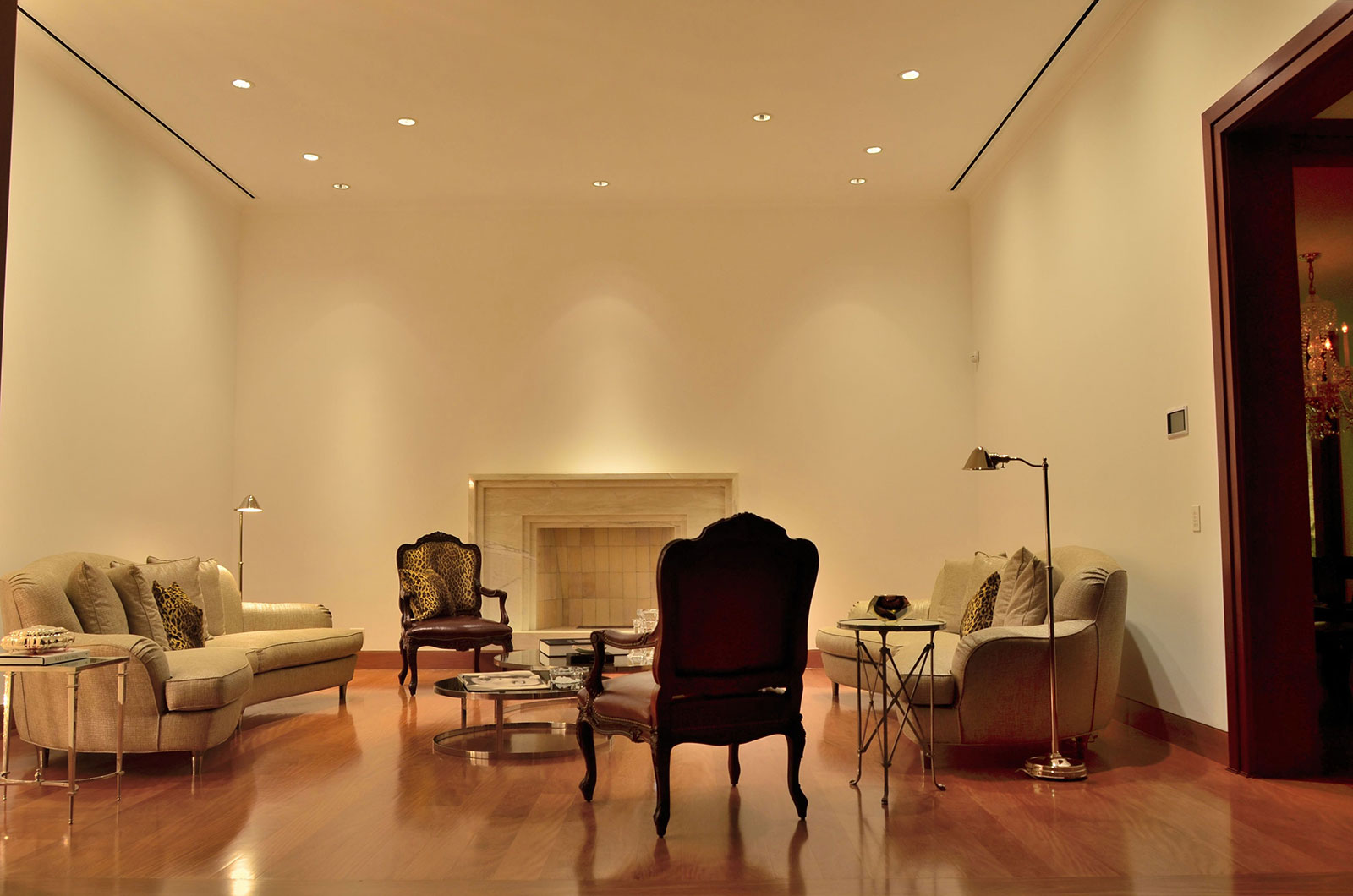 Se trabajó con la familia desde una fase muy temprana del concepto, lo que permitió un intercambio de ideas y un proyecto de iluminación personalizado. La clienta tenía un gusto exquisito, ella mismo diseño el interior de cada espacio. Se trabajó las áreas sociales con bañadores de pared de alto rendimiento y se complementó cada espacio con lámparas decorativas.