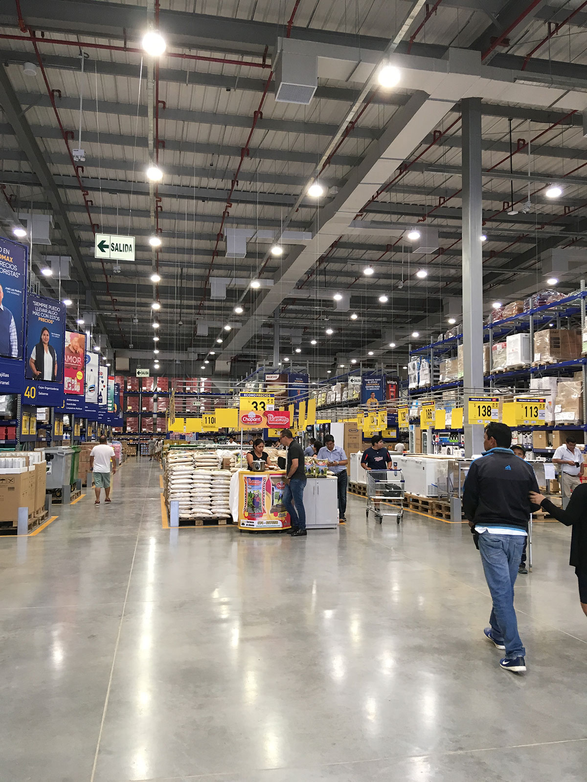 Es una cadena de tiendas mayoristas donde se trabajó en conjunto con todos los especialistas desde la etapa de desarrollo del Proyecto. Se definió cada área con la finalidad de guiar al cliente por los recorridos, diferenciándose entre ellos con los niveles de iluminancia.  Una buena iluminación realza el producto, promueve la sostenibilidad y la rentabilidad.