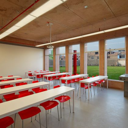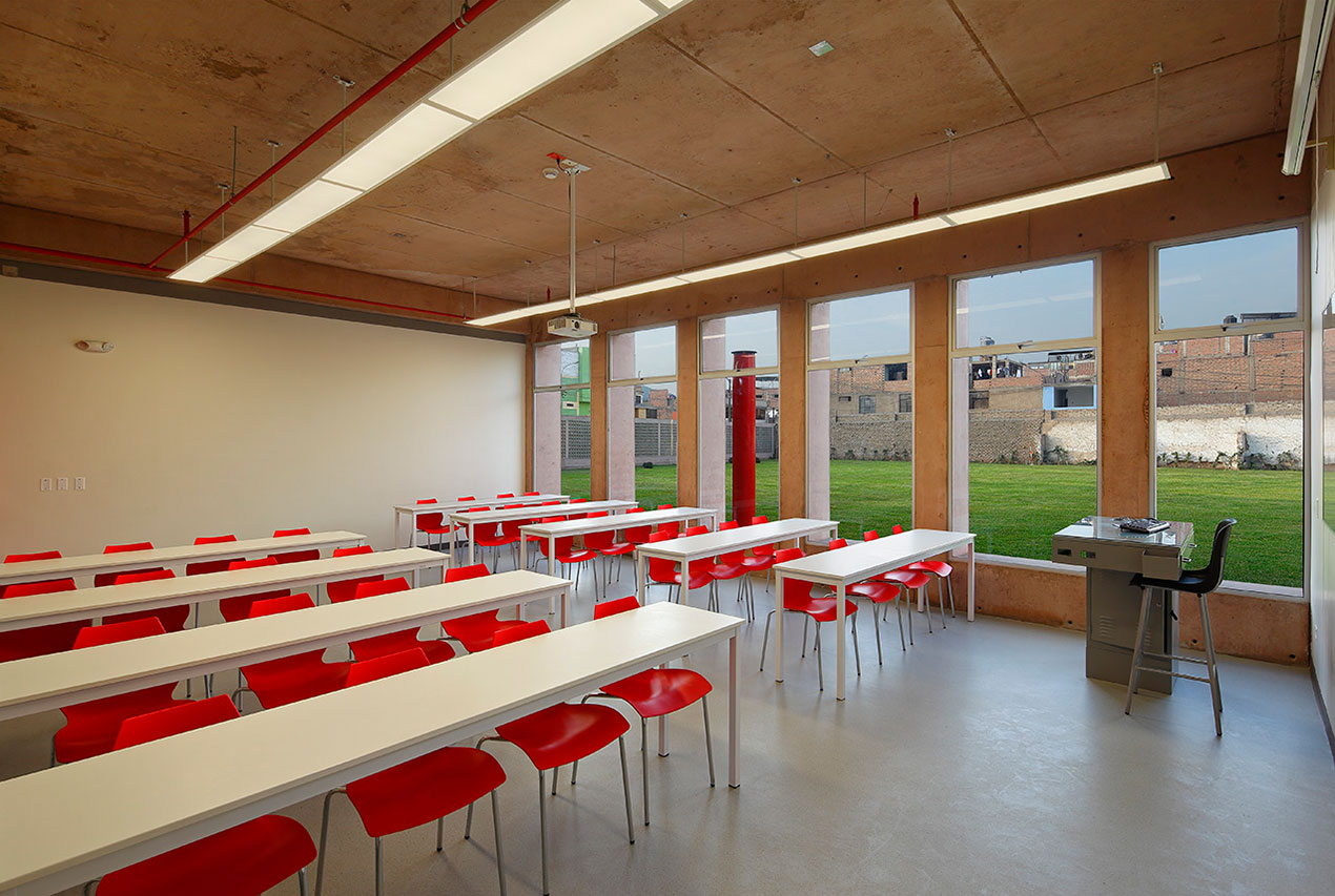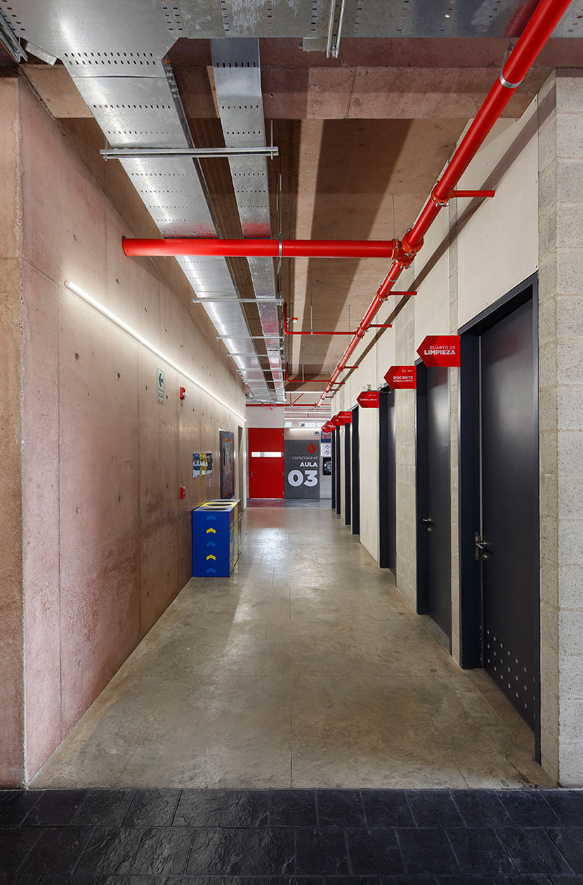 Es un proyecto que se trabajó con pocos modelos de luminarias para hacerlo más eficiente y económico. El valor está en el diseño cualitativo, la ubicación de cada luminaria no solo responde a su función sino a su integración con él entorno. Las luminarias exteriores se integran al espacio urbano y permiten el encuentro y la conversación con los ciudadanos y estudiantes.
